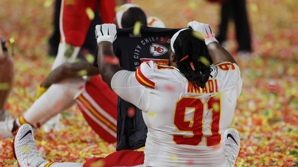 The defensive tackle and Ocean Lakes grad The defensive tackle and Ocean Lakes grad Derrick Nnadi wins second Super Bowl! https://www.wavy.com/news/local-news/vbs-nnadi-pays-for-dog-adoptions-again-after-chiefs-super-bowl-win/ Photo: Getty Images